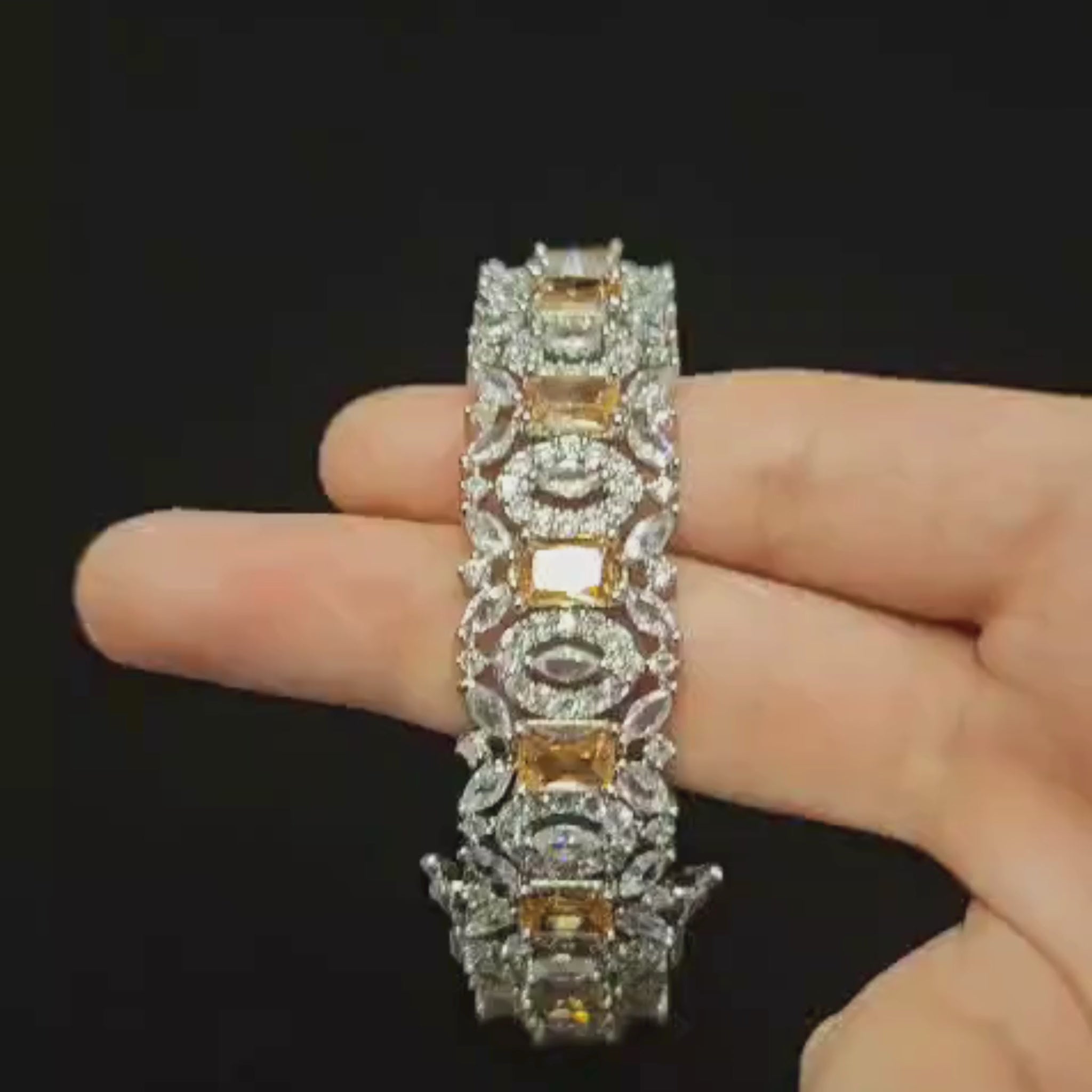 A true statement of sophistication, this bracelet features radiant champagne-toned crystals framed with dazzling stones. Its bold yet graceful design makes it perfect for special occasions or elevating any evening look.