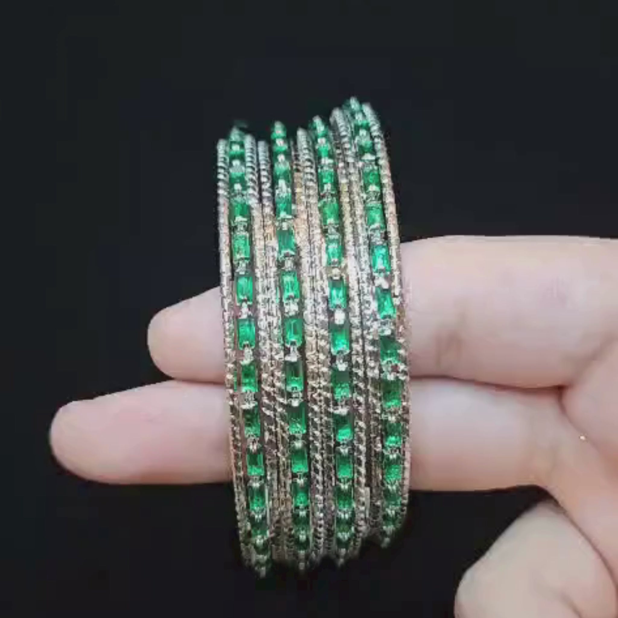 Versatile and stylish, these silver and green stack bangles are a must-have for your collection. Wear them solo for a minimal look or stack them up for a bold, glamorous style.