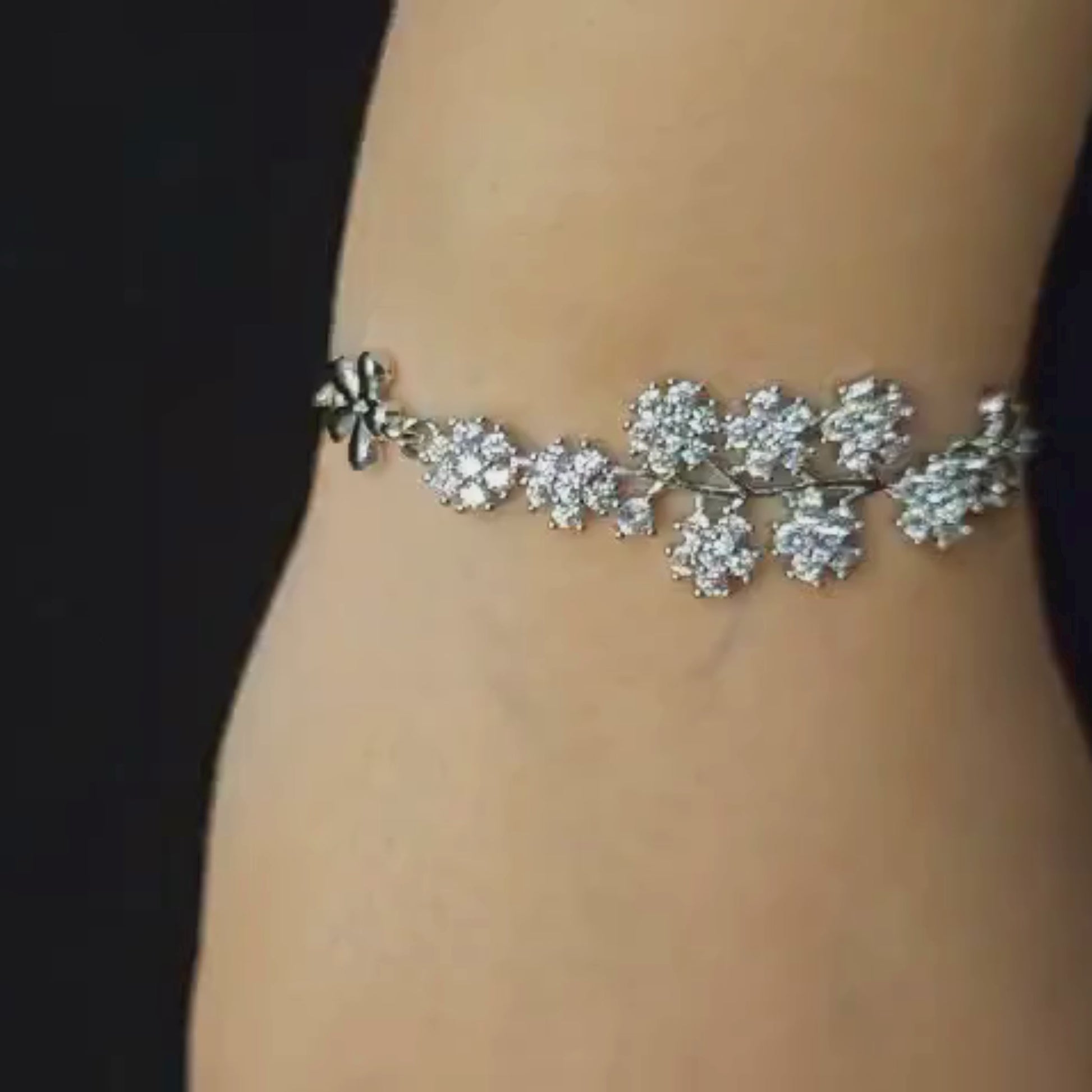 This elegant bracelet features floral-inspired clusters of shimmering stones, perfect for adding subtle sparkle to your ensemble.